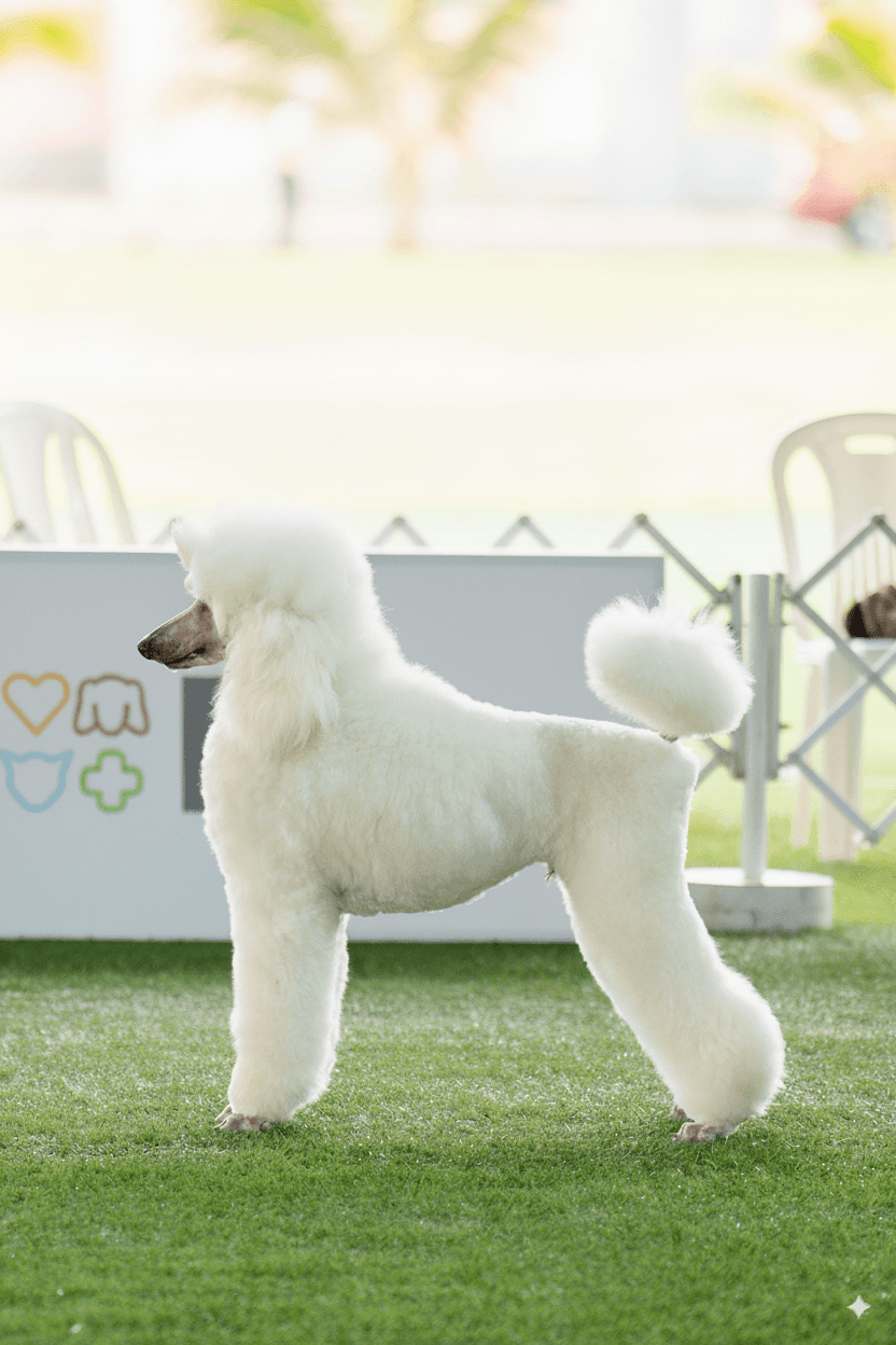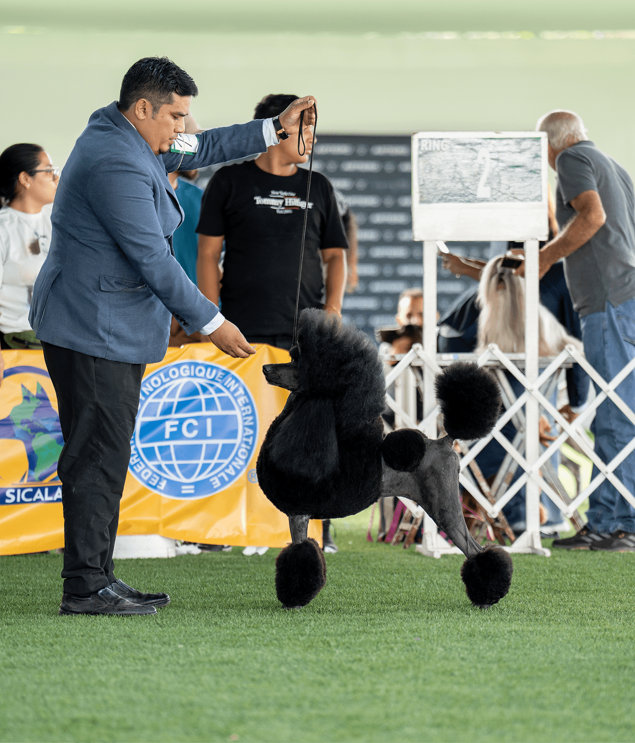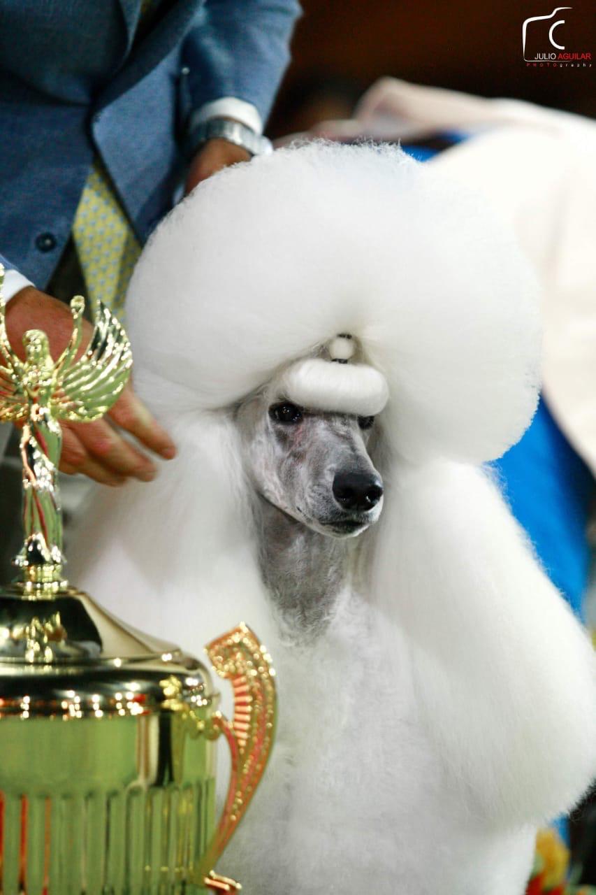 Me reencontré con los poodles tras una exposición de sharpei en México. El handler que trabajaba conmigo, también un apasionado de los poodles, me comentó que había visto una hermosa hembra gigante blanca en venta. Aunque